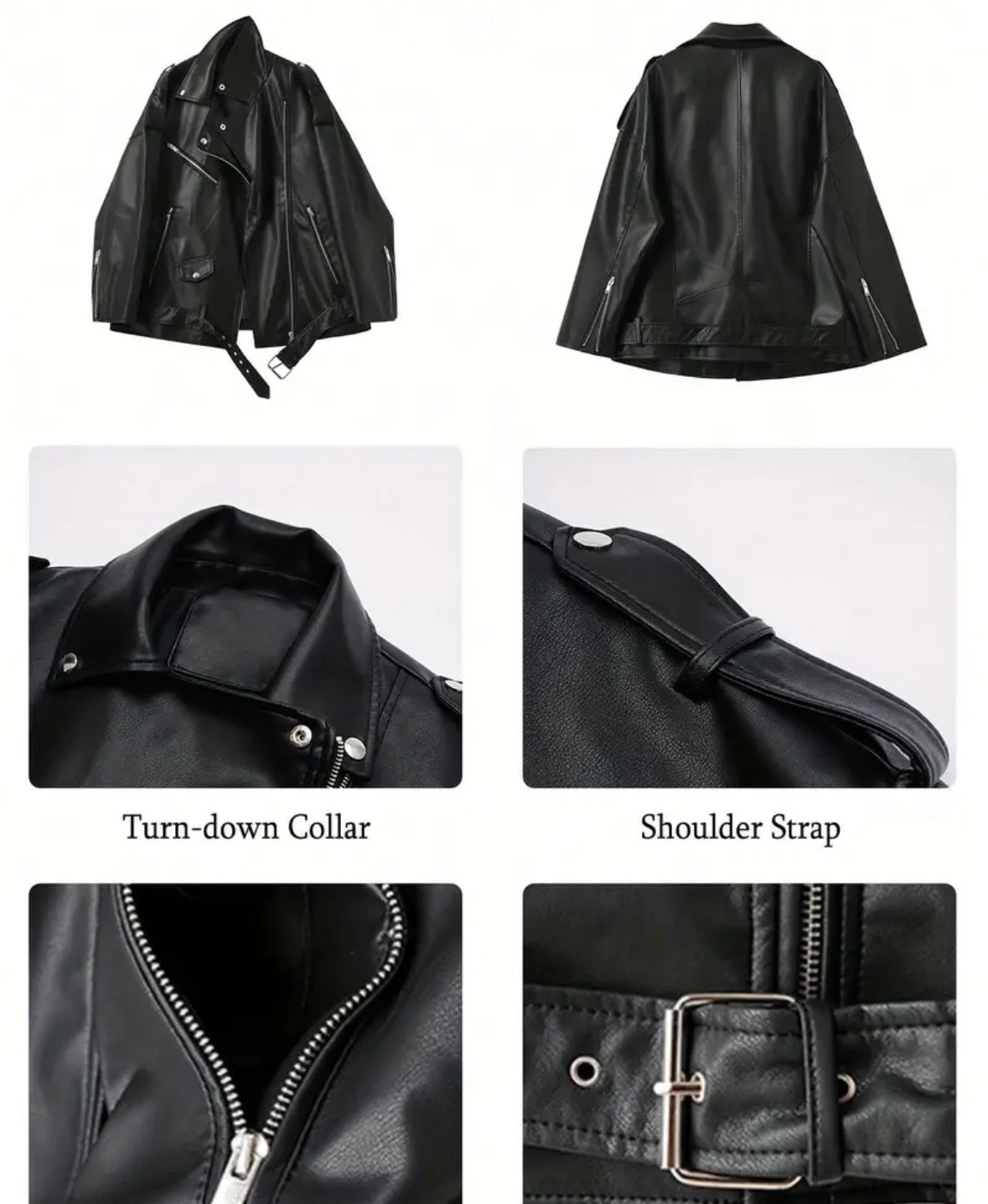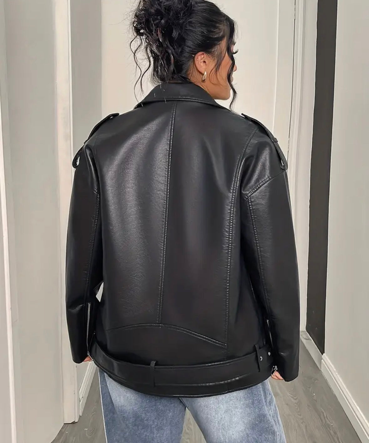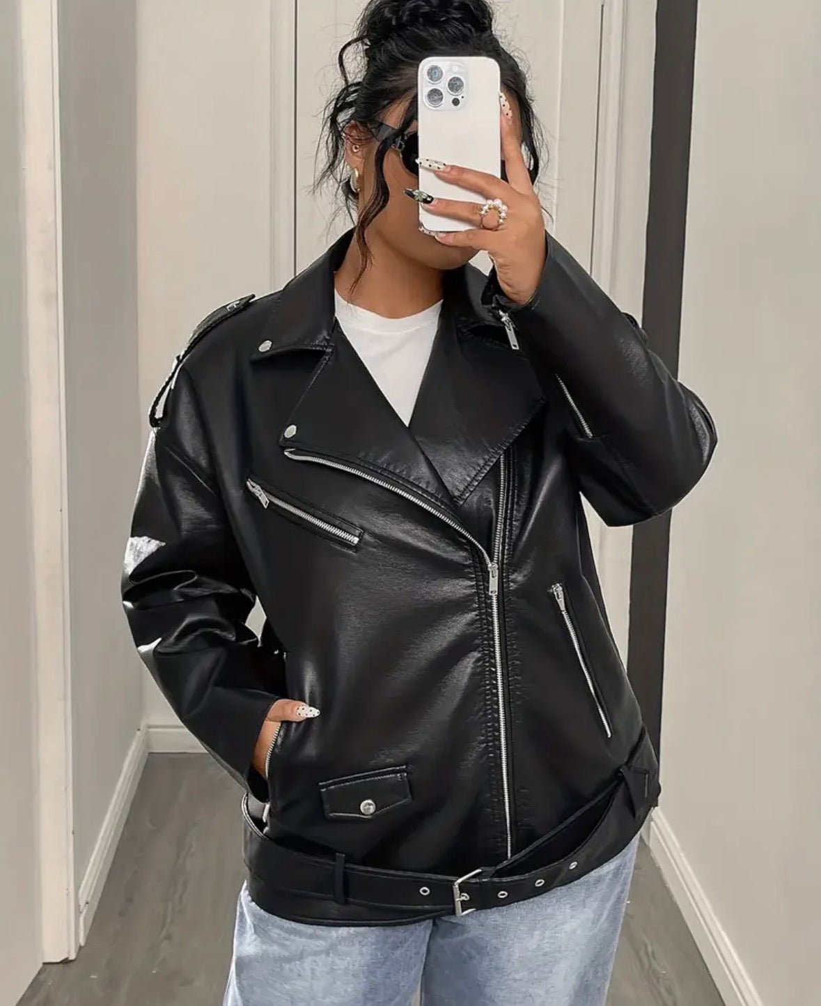 Questo chiodo MARIANNA è la taglia unica perfetta(OVERSIZE) per tutte le occasioni. Dotato di zip e bottoni in argento, ti offre un design elegante ed essenziale. La cintura finale e il doppio petto ti donano una silhouette slanciata. Stile e funzionalità in un unico capo.