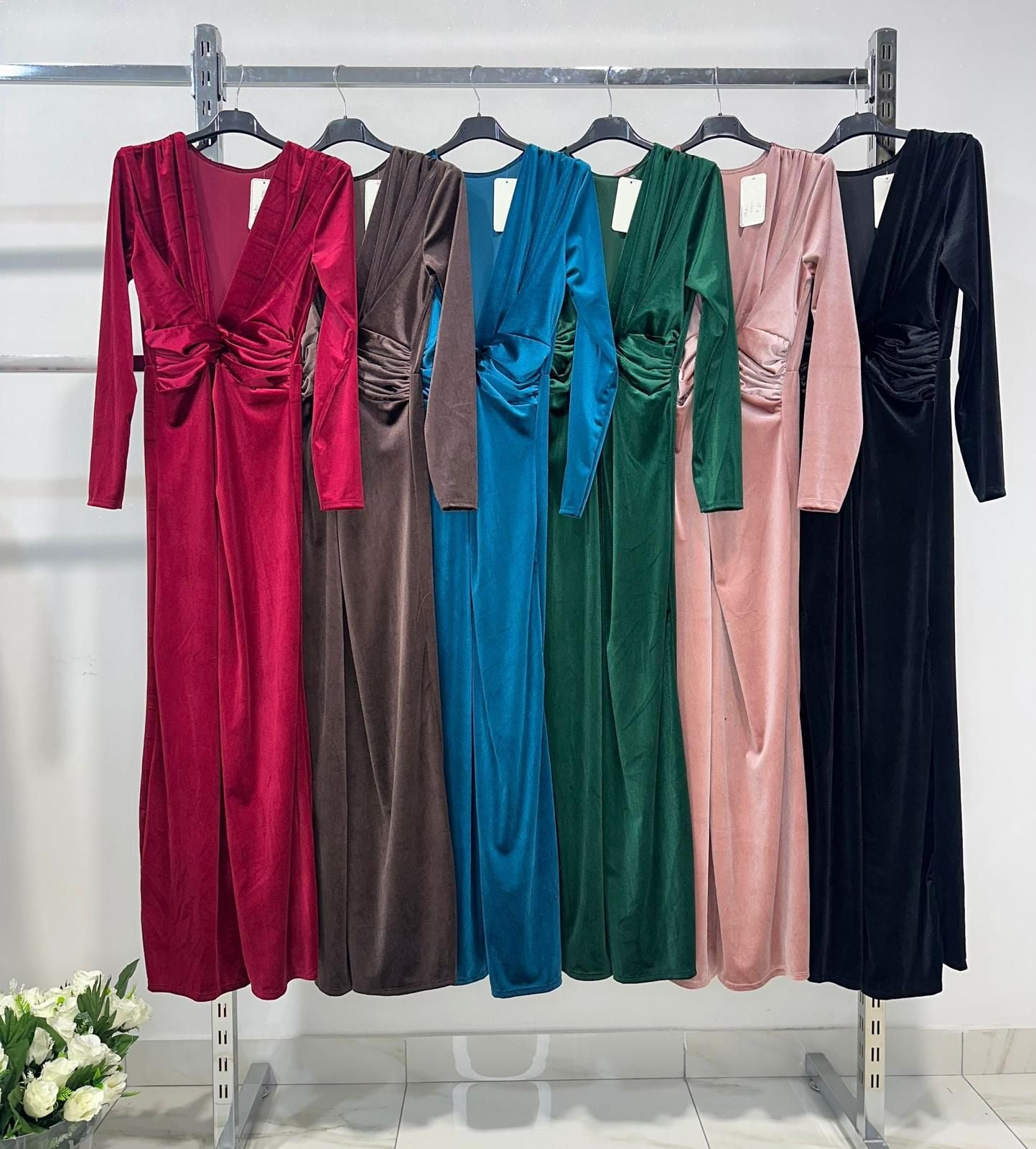 La Tuta ISABEL è la scelta perfetta per essere eleganti e comode allo stesso tempo. Taglia unica e disponibile in vari colori, il morbido vellutino e il suo scollo a V con incrocio frontale ti faranno sentire al tuo meglio. Il pantalone palazzo aggiunge un tocco di classe e comfort.